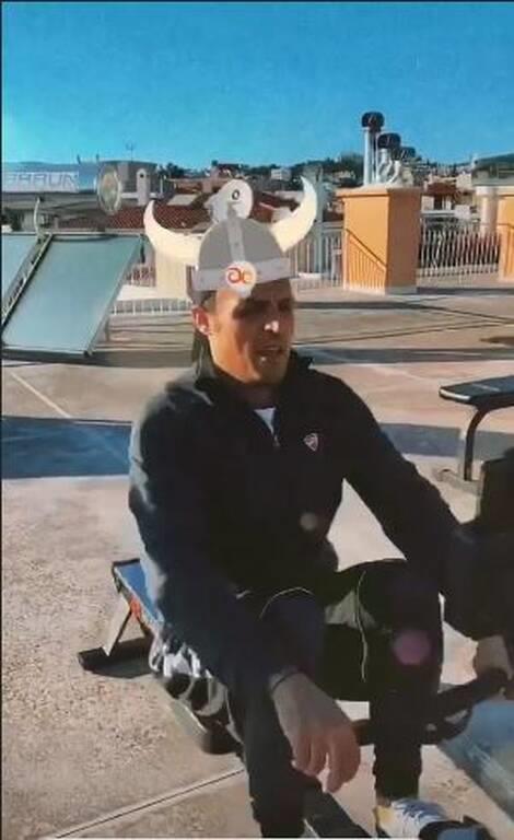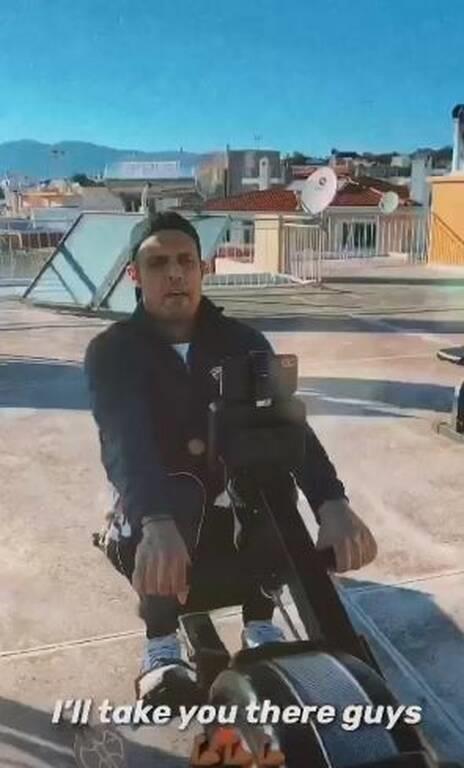 Έχοντας ως σύμμαχο ένα ειδικό μηχάνημα γυμναστικής, ο Σάββας Πούμπουρας ανεβαίνει στην ταράτσα και προπονείται, ενώ όπως θα δείτε απολαμβάνει και τον ουρανό.