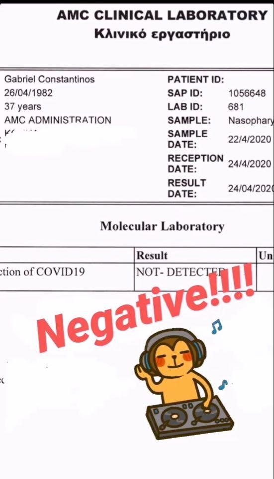 Έτσι έκανε εξετάσεις για κορωνοϊό και ανέβασε το αρνητικό αποτέλεσμα του στον προσωπικό του λογαριασμό στο διαδίκτυο.