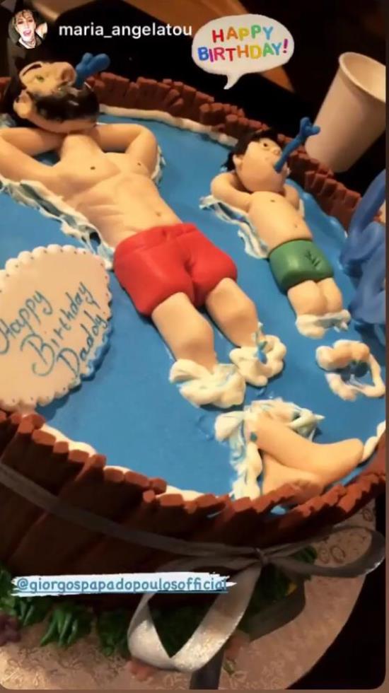 Η πρωτότυπη τούρτα γενεθλίων απεικόνιζε τον ίδιο με τον δύο ετών γιό του, Άγγελο, στη θάλασσα και είχε την επιγραφή «χαρούμενα γενέθλιά μπαμπάκα»!