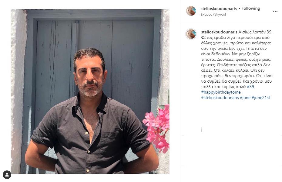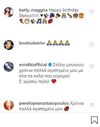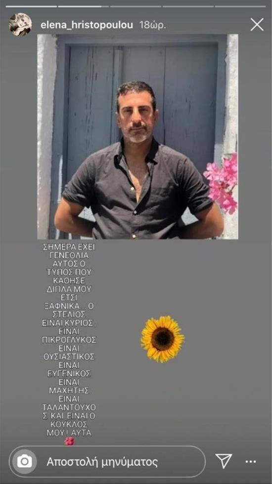 Έτσι, δημοσίευσε στο Instagram μια φωτογραφία του και έγραψε: «Σήμερα έχει γενέθλια αυτός ο τύπος που κάθισε δίπλα μου έτσι ξαφνικά… Ο Στέλιος είναι κύριος, είναι πικρόγλυκος, είναι ουσιαστικός, είναι ευγενικός, είναι μαχητής, είναι ταλαντούχος, είναι ο κούκλος μου! Αυτά».