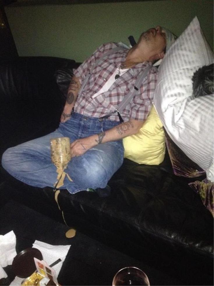 Στο δικαστήριο παρουσιάστηκε και μια φωτογραφία που δείχνει τον Τζόνι Ντεπ να κοιμάται έχοντας λερωθεί με παγωτό που έλιωνε πάνω του