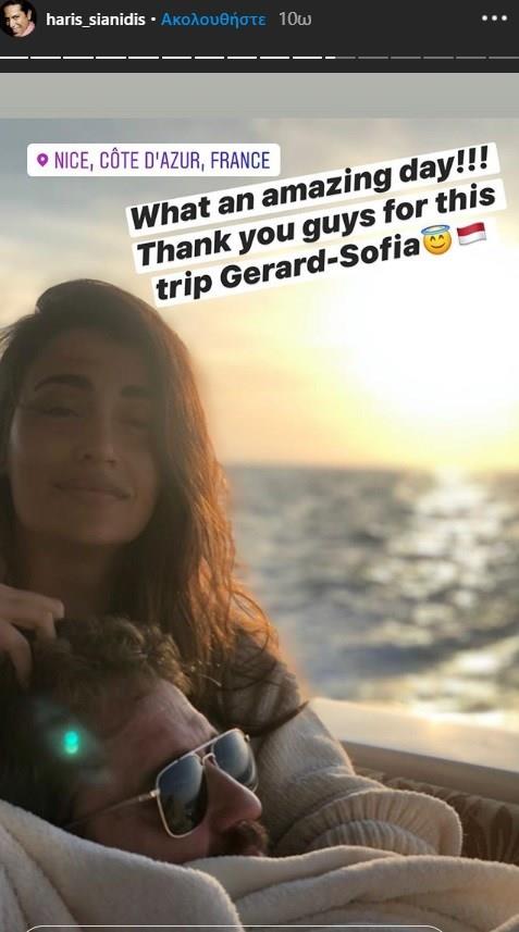 Σε instastory, μάλιστα, που ανήρτησε ο ίδιος για να τους ευχαριστήσει για τη φιλοξενία, είδαμε τον Τζέραρντ Μπάτλερ να είναι ξαπλωμένος στην αγκαλιά της Σοφίας Χαρμαντά, ενώ σε ένα άλλο είδαμε το ζευγάρι να απολαμβάνει ξέγνοιαστες στιγμές στη θάλασσα κάνοντας jet ski.