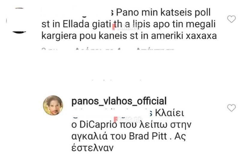 «Πάνο μην κάτσεις πολύ στην Ελλάδα, θα λείπεις από τη μεγάλη καριέρα που κάνεις στην Αμερική…» έγραψε με κακεντρέχεια ένας από τους ακολούθους του στο Instagram.