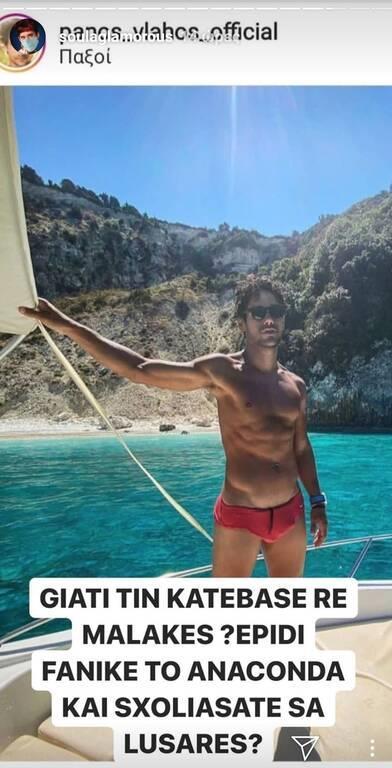 Ο λογαριασμός Soula Glamorous βρήκε τη φωτογραφία που δημοσίευσε ο Πάνος Βλάχος αλλά λίγο μετά την κατέβασε και αφού την ανήρτησε στα instastories, εξήγησε με χιούμορ γιατί ο ηθοποιός μπήκε στην διαδικασία να την διαγράψει.