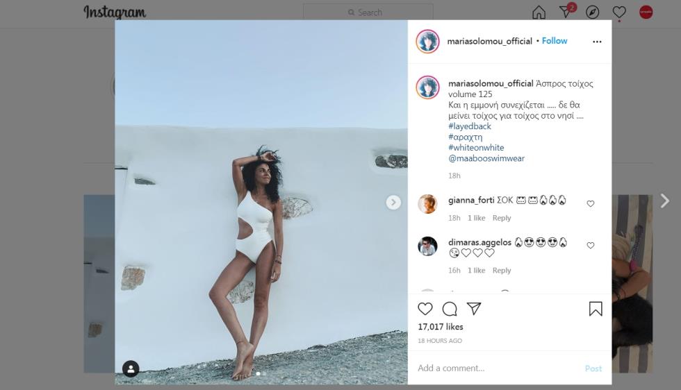 Δείτε τις φωτογραφίες που ανέβασε η Μαρία Σολωμού στο Instagram.