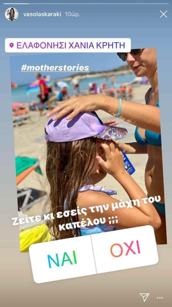Χθες, επισκέφθηκε την παραλία μαζί με την κόρη της, Εύα και ανέβασε μία φωτογραφία προκειμένου να μοιραστεί τον πόνο της με τις υπόλοιπες μαμάδες που επίσης κυνηγάνε τα παιδιά τους για να τους φορέσουν καπέλο στη θάλασσα.