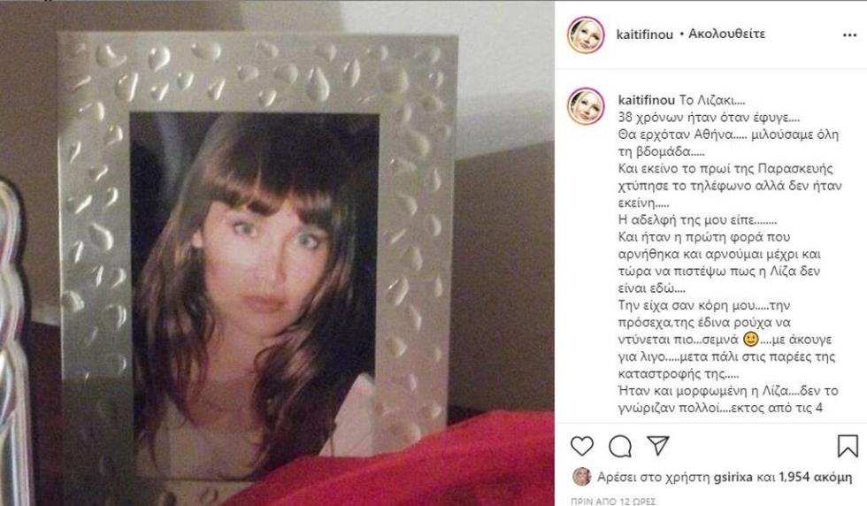 Η Καίτη Φίνου αφού δημοσίευσε μία φωτογραφία της Λίζας που ήταν 38 χρονών, εξομολογήθηκε: