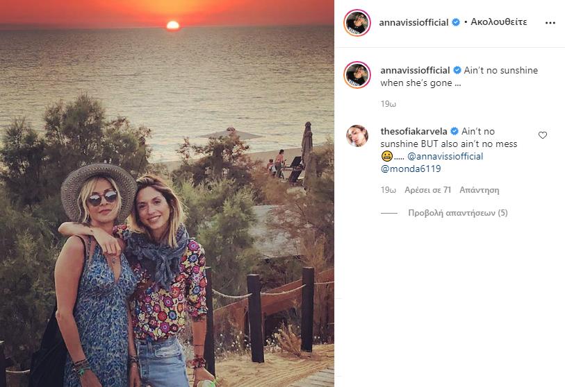 «Αγαπημένη μου Ελλάδα, σε φιλώ και σε αποχαιρετώ για άλλη μια φορά. Ήσουν όμορφη όπως πάντα. Μέχρι την επόμενη φορά», έγραψε χαρακτηριστικά στη λεζάντα της η Σοφία Καρβέλα.
