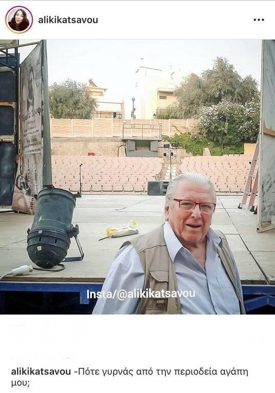 Δημοσιεύοντας μια φωτογραφία με τον Κώστα Βουτσά κάτω από τη σκηνή, η Αλίκη Κατσαβού έγραψε: "Πότε γυρνάς από την περιοδεία αγάπη μου;"