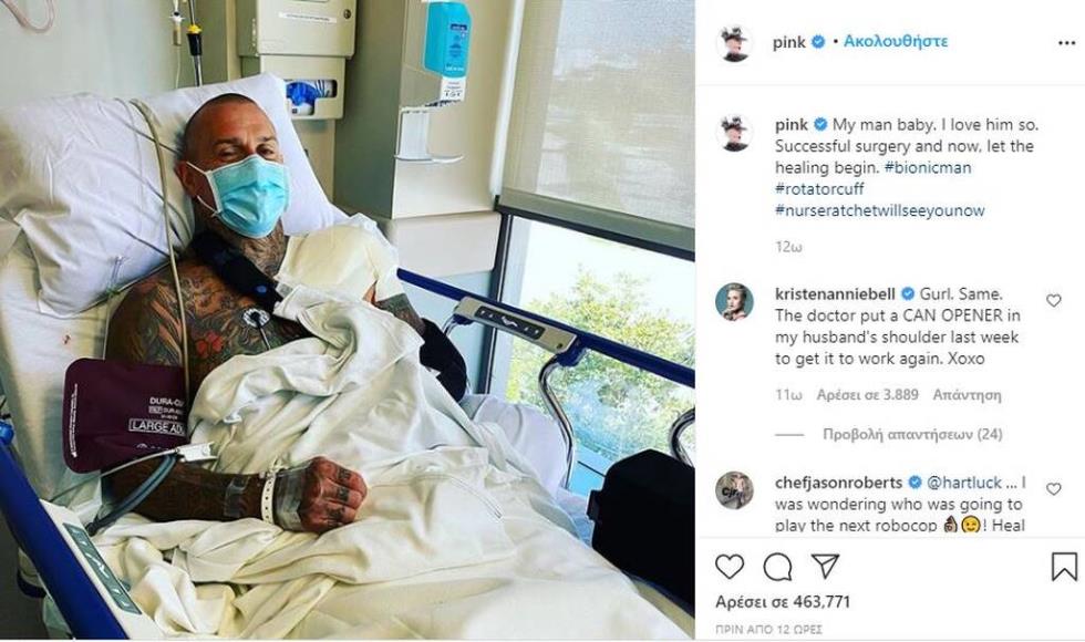 Ο σύζυγός της είχε έναν σοβαρό τραυματισμό στο «πέταλο» του ώμου του μιας και είναι επαγγελματίας του motocross και χειρουργήθηκε αφού πρώτα φυσικά έκανε τεστ για κορωνοϊό!