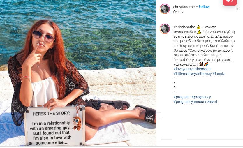 Η ίδια στον προσωπικό της λογαριασμό στο ίνσταγκραμ ανακοίνωσε ότι με τον σύντροφό της Σπύρο Χρήστου θα γίνουν γονείς!<