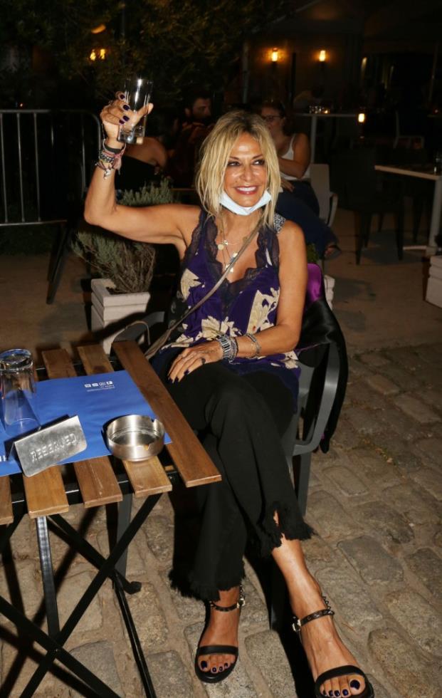 Ντυμένη casual και ευδιάθετη κατά τη διάρκεια της βραδιάς σήκωσε το ποτήρι της και χαιρέτησε τον κόσμο που όπως ήταν αναμενόμενο την αναγνώρισε