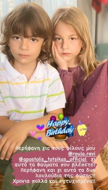Μάλιστα με αφορμή τα πέντε αυτά χρόνια, η Ρούλα Ρέβη δημοσίευσε για πρώτη φορά φωτογραφίες των παιδιών όπου έδειχνε μάλιστα καθαρά τα πρόσωπά τους. Φωτογραφίες που λίγο αργότερα ωστόσο διέγραψε από τον προσωπικό της λογαριασμό στο Instagram.