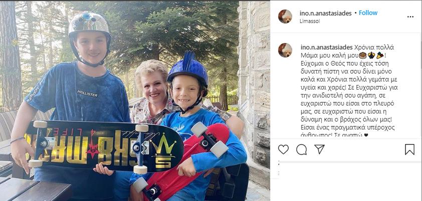 «Χρόνια πολλά Μάμα μου καλή μου🎂🎊🎉! Εύχομαι ο Θεός που έχεις τόση δυνατή πίστη να σου δίνει μόνο καλά και Χρόνια πολλά γεμάτα με υγεία και χαρές! Σε Ευχαριστώ για την ανιδιοτελή σου αγάπη, σε ευχαριστώ που είσαι στο πλευρό μας, σε ευχαριστώ που είσαι η δύναμη και ο βράχος όλων μας! Είσαι ένας πραγματικά υπέροχος άνθρωπος! Σε αγαπώ ♥️»