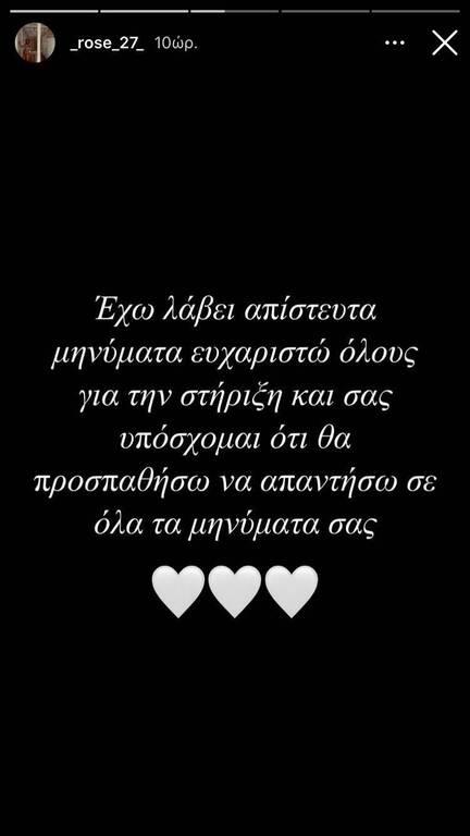 «Έχω λάβει απίστευτα μηνύματα, ευχαριστώ όλους για τη στήριξη και σας υπόσχομαι ότι θα προσπαθήσω να απαντήσω σε όλα τα μηνύματά σας»  ήταν το πρώτο μήνυμα της μετά την αποχώρησή της