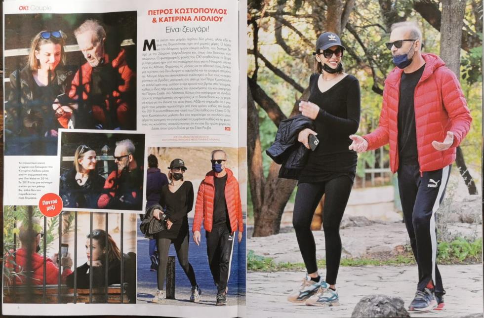 Σύμφωνα με το περιοδικό, ο Πέτρος και η Κατερίνα είναι ζευγάρι περίπου δυο μήνες ενώ ο εγκλεισμός, δεν τους αφήνει πολλά περιθώρια για εξόδους. Έτσι, περιορίζονται σε βραδιές μαγειρικής στο σπίτι, με σεφ φυσικά τον Πέτρο Κωστόπουλο.