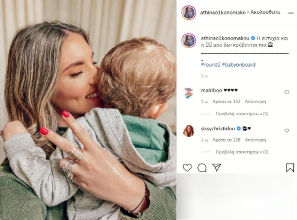 «Η ευτυχία και η εγκυμοσύνη μου δεν κρύβονται πια» έγραψε η Αθηνά Οικονομάκου στη φωτογραφία που δημοσίευσε με τον γιο της, Μάξιμο.