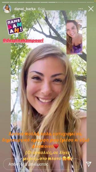 «Χρόνια πολλά, καλά, ευτυχισμένα, δημιουργικά όμορφή μου (μέσα κι έξω) Δέσποινα. Οι αγκαλιές σε λίγες μέρες στο πλατό», έγραψε η Δανάη Μπάρκα φανερά χαρούμενη για την επερχόμενη συνεργασία της με την Δέσποινα Καμπούρη.