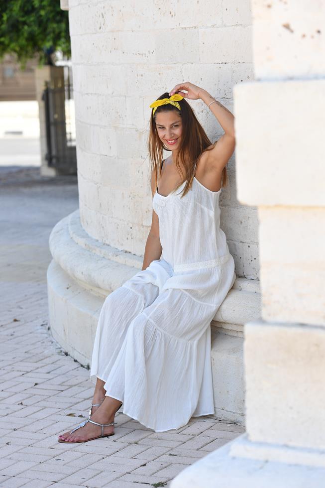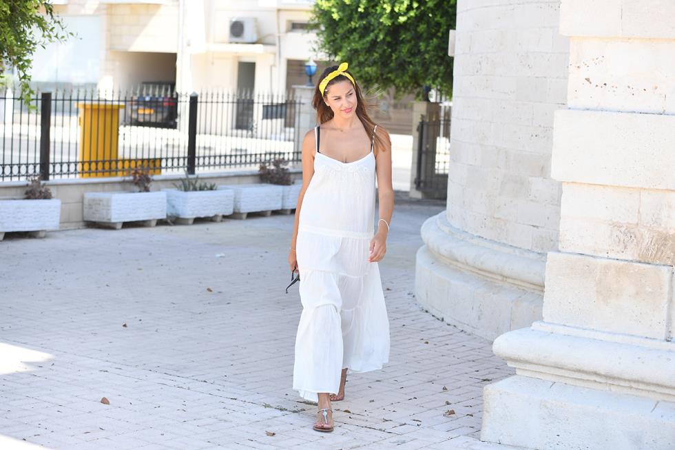 Εγώ επέλεξα ένα αέρινο, μάξι λευκό φόρεμα που κολακεύει την κάθε σιλουέτα, ταιριάζοντας το με ένα μαντήλι στα μαλλιά σε έντονο κίτρινο χρώμα, (ένα στοιχείο που αγαπώ τόσο πολύ, που απλά το έχω υιοθετήσει με όλα τα looks μου,), and i'm ready to go, everywhere!